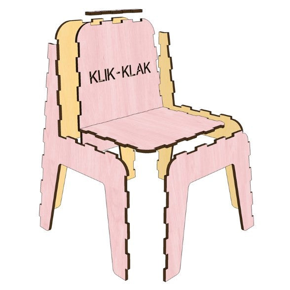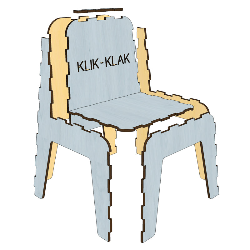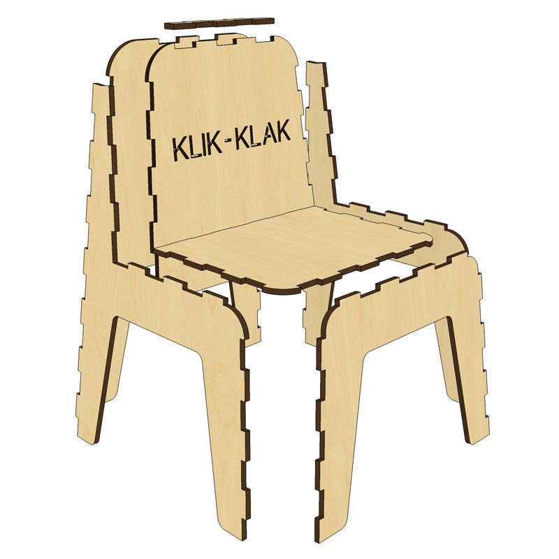 The KLIK-KLAK chair: handmade using laser cutting technology and high quality FSC approved birch wood. This beautiful sustainable wooden high chair is a fantastic gift to sit on every day.